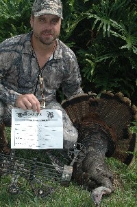 We each picked out good Jakes from the bunch that moved by & my arrow found its mark as I watched the Lumenock disappear, the turkey did not make it 10 yards. A few high fives & congrats we in order, as this was my first turkey with the bow!!